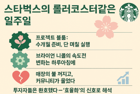 프로젝트 블룸은 단순한 구조조정이 아니라, 스타벅스가 다시 태어나기 위한 ‘리셋 선언’ 이었습니다.