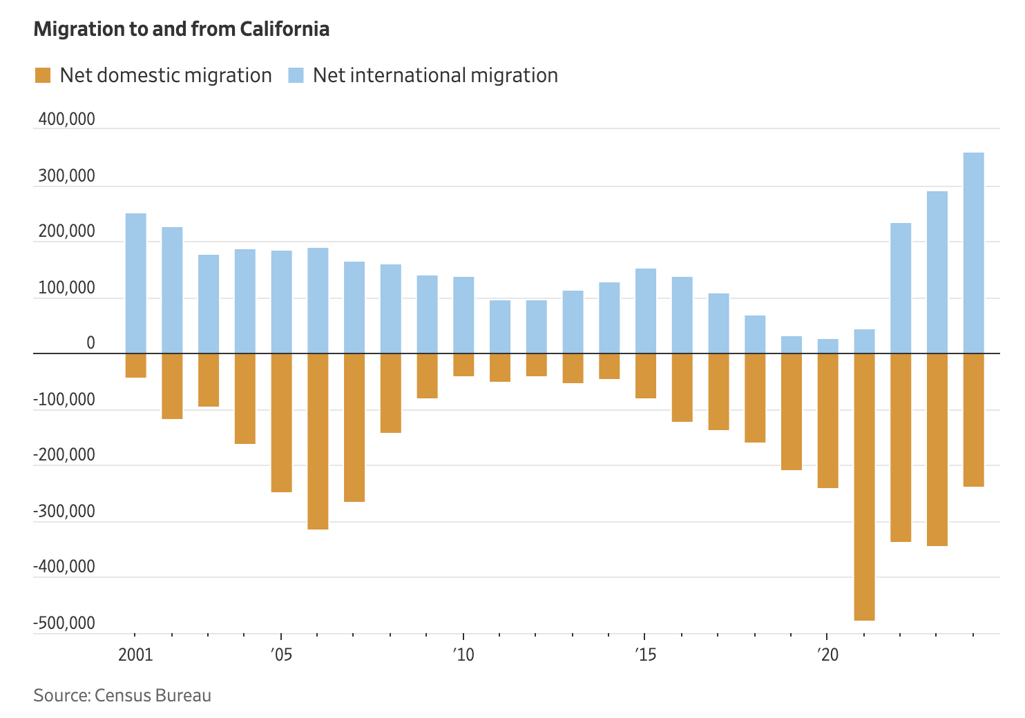 캘리포니아는 더 이상 국내 이주자나 출산율로는 인구 증가를 유지하기 어렵습니다. 대신, 세계 곳곳에서 유입되는 '이민자'들이 그 공백을 메우고 있습니다. 인구 감소 우려가 끊이지 않던 캘리포니아는 2024년 0.6%의 인구 증가를 기록하며 반등에 성공했는데, 그 대부분은 해외 이민 덕분입니다.