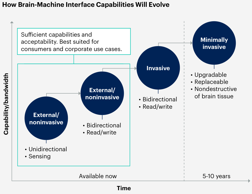 Gartner는 2030년까지 IT 근로자의 60%가 양방향 뇌-기계 인터페이스(BBMIs)를 포함한 신경 강화 기술에 의존하게 될 것으로 예측하고 있습니다. 이는 개인의 생산성뿐만 아니라 조직 전체의 성과를 향상시키는 데 큰 기여를 할 것으로 기대됩니다.