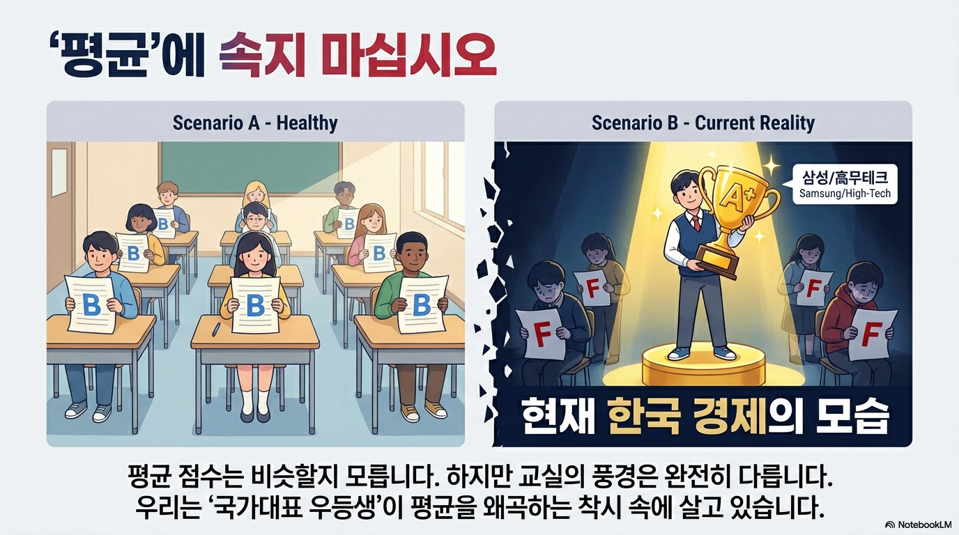 한 명의 만점자가 평균을 끌어올리는 학교와, 상위권이 두터운 학교 중 어느 쪽이 더 건강한 학업 생태계를 가졌다고 할 수 있을까요? 우리 경제가 던져야 할 질문도 이와 같습니다.
