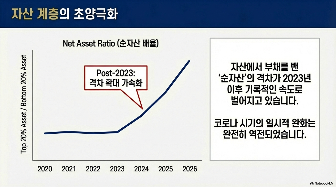 ◦ 부동산: 서울 및 수도권 일부 지역의 집값만 급등하고, 지방 광역시의 주택 가격은 2023년 초 수준도 회복하지 못하는 등 지역 간 자산 격차가 극심해지고 있습니다.