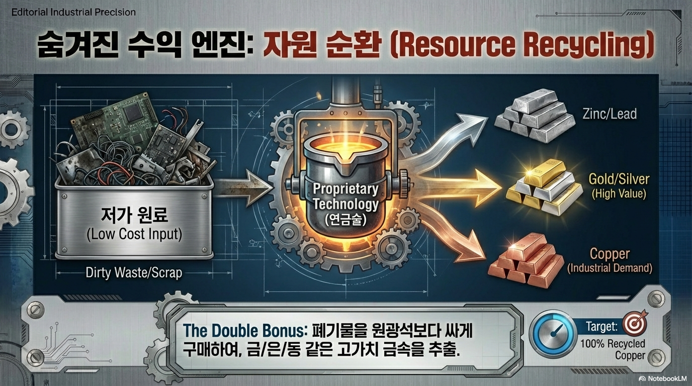 고려아연이 생산하는 동(구리)은 100% 재활용 원료에서 나온다. 광산에서 캐낸 광석이 아니라, 우리가 버린 폐서버나 스마트폰 같은 '전자 스크랩'이 그들의 구리 광산이다.