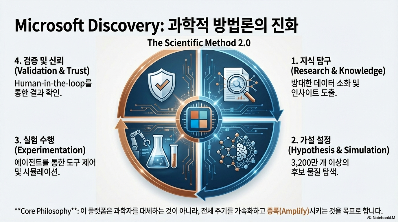 AI가 과학적 주도권을 가져가는 것에 대한 우려는 'Human-in-the-loop' 모델을 통해 해소됩니다. 마이크로소프트의 Discovery 플랫폼이 지향하는 미래는 AI가 내놓은 결과에 대해 각주(Footnotes), 주석(Annotations), 그리고 상세한 로그 기록을 제공하는 투명한 시스템입니다.