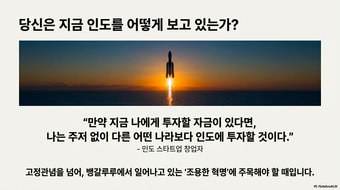 질문을 던집니다. 만약 당신에게 오늘 투자할 자본이 있다면, 여전히 과거의 강대국들만 바라보겠습니까? 아니면 이미 시작된 이 거대한 변화의 물결, '뉴 인디아'에 올라타겠습니까?
