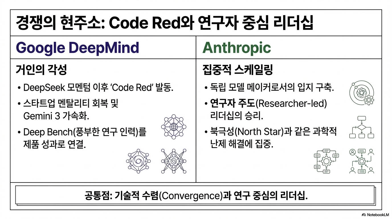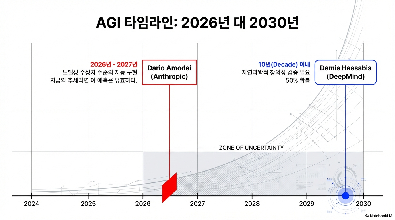 이것이 의미하는 바는 명확합니다. 창조자들 사이의 논쟁은 더 이상 'AGI가 가능한가?'가 아닙니다. 이제 그들의 논쟁은 '어떤 특정 엔지니어링 경로가 먼저 AGI를 실현시킬 것이며, 그 경로가 얼마나 빠른가?' 로 옮겨갔습니다. '수십 년'이 아닌 '한 자릿수 햇수' 단위로 미래가 재정의되고 있습니다.