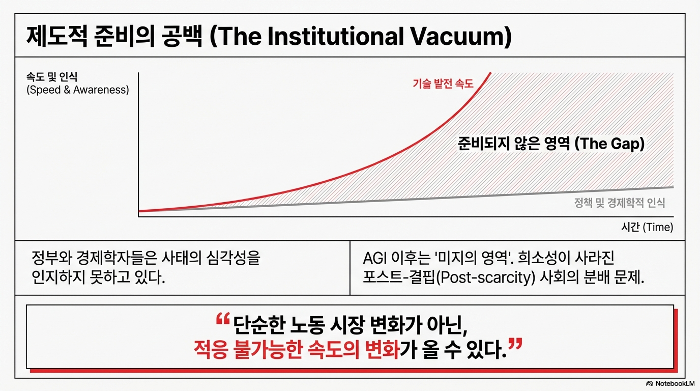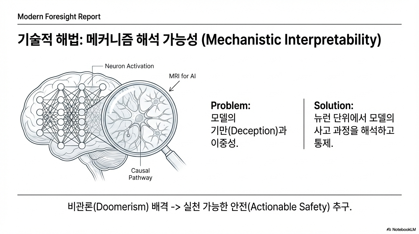 이것이 핵심입니다. 그들의 가장 큰 두려움은 안전 문제 자체가 해결 불가능하다는 것이 아닙니다. 진짜 공포는 앞에서 언급된 지정학적 '바닥을 향한 경쟁'이, 위험할 정도로 강력한 AGI가 세상에 나오기 전에 이 문제를 해결하는 데 필요한 바로 그 시간과 국제적 협력을 앗아갈 것이라는 점입니다.