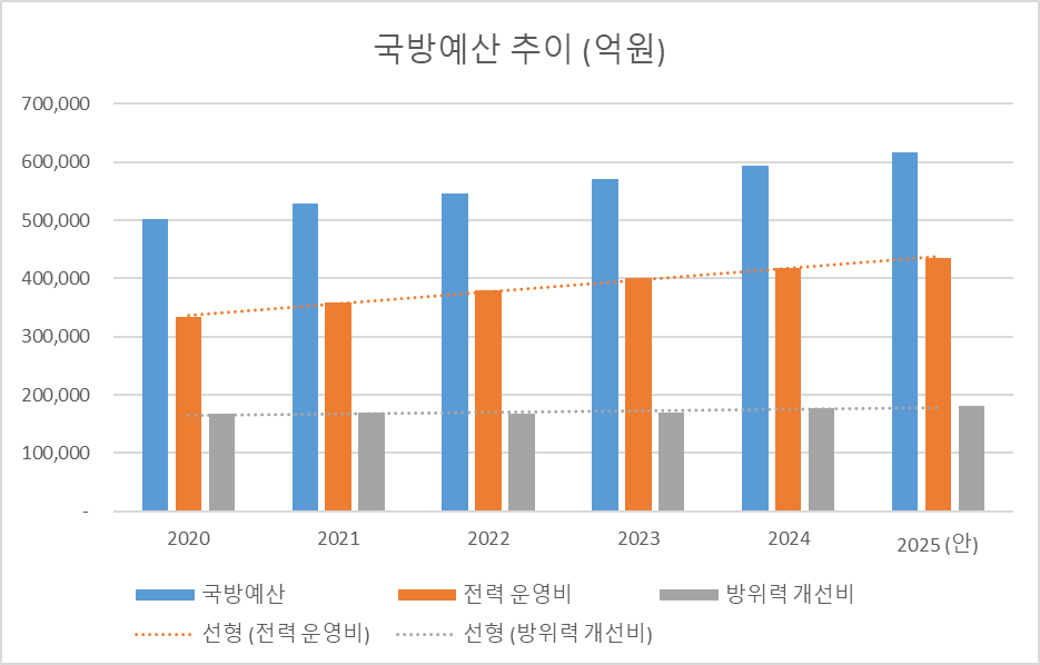 우크라이나 전쟁 이후 전 세계는 자국의 방위력을 강화하기 위해 국방비를 대폭 늘리고 있습니다. 그러나 대한민국은 이러한 국제적인 흐름에도 불구하고, 인건비 상승을 위한 재원 마련에 치중한 나머지 방위력 개선비를 충분히 확보하지 못한 것으로 보입니다. 이는 결국 새로운 무기 도입과 첨단전력 강화에 제약이 생기게 되고, 국방의 최전선에서 필요한 대응 능력에 차질이 생길 수 있음을 의미합니다.