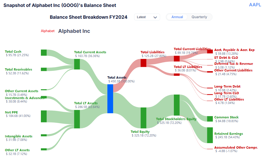 2025년 1분기 기준, 알파벳의 영업이익률은 사상 최고인 40%를 기록했습니다. 2024년에는 EBITDA 마진이 300bp(3%) 증가했으며, 이는 구조조정(인력 감축, 인건비 절감)과 AI 기반 효율화 덕분입니다. 여기에 순현금 보유액은 840억 달러에 달해, 자사주 매입 및 혁신 투자가 충분히 가능한 안정된 재무 구조를 보유하고 있습니다.
