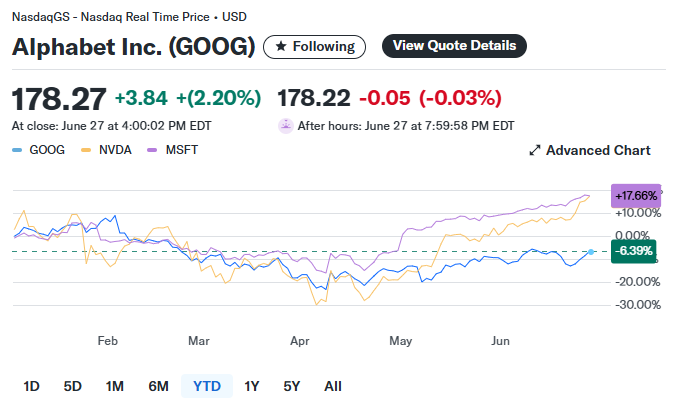 2025년 상반기, 테크 주식 시장에서 눈에 띄는 흐름이 하나 있습니다. 바로 AI 관련 수혜주들이 천장을 뚫을 기세로 급등하는 가운데, 알파벳(Alphabet)은 정체 혹은 하락세를 보이고 있다는 점입니다.