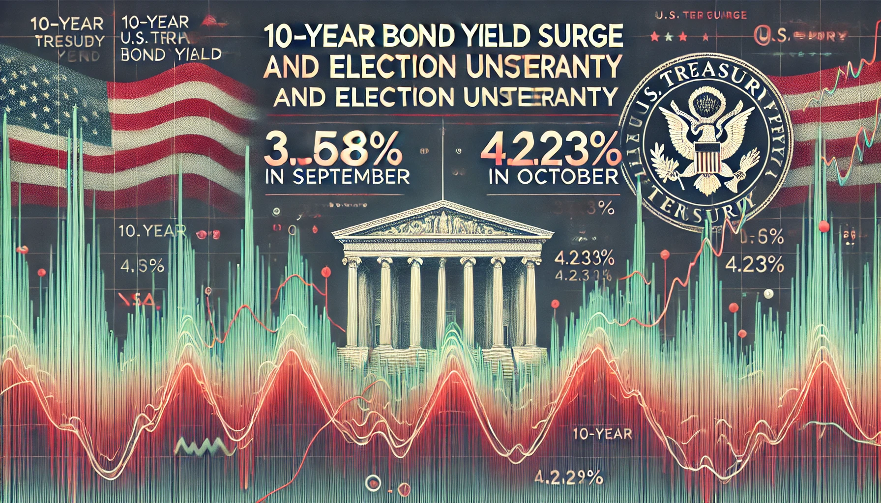 이번 미국 대선을 앞두고 채권 시장이 급격한 변화를 겪고 있습니다. 특히 미국 10년물 국채 금리가 최근 몇 주간 큰 폭으로 상승했습니다. 9월 19일에는 3.58%로 비교적 안정된 모습을 보였으나, 10월 23일에는 4.23%까지 치솟았습니다. 이러한 금리 상승은 단순한 일시적 현상이 아니라, 대선을 둘러싼 정치적 불확실성과 경제적 우려가 복합적으로 반영된 결과로 분석됩니다.