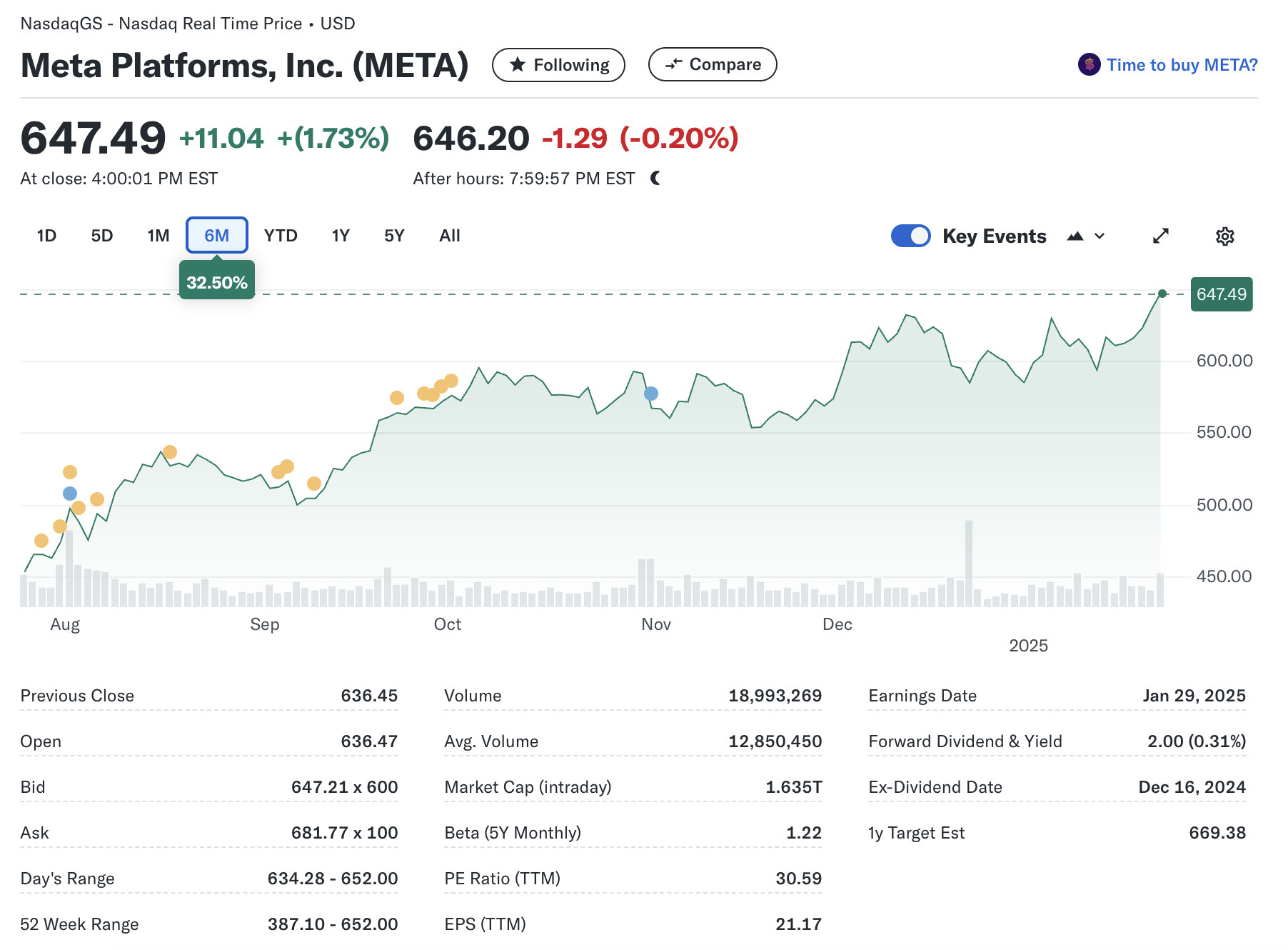 - 현재 주가: $647.49