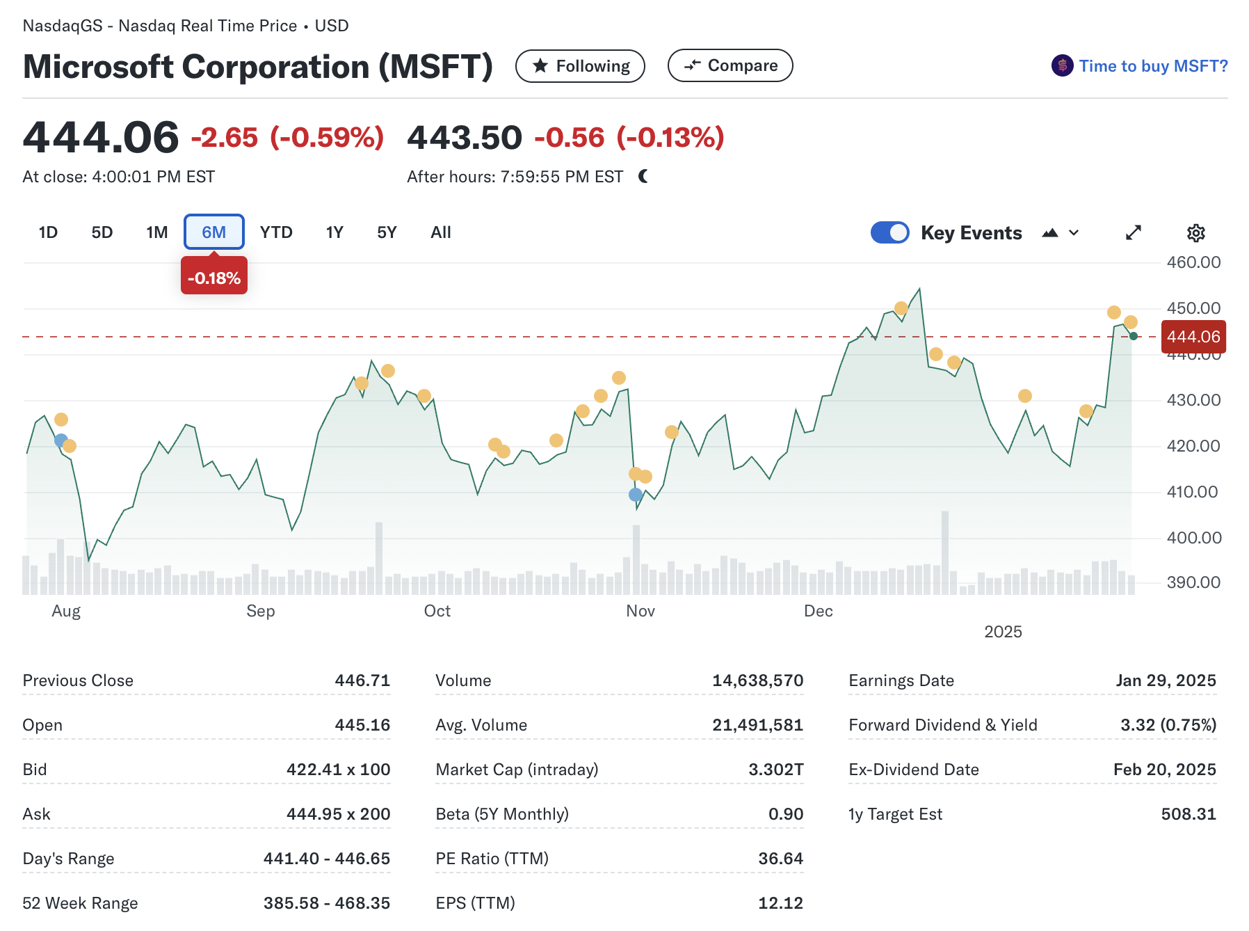 - 현재 주가: $444.06