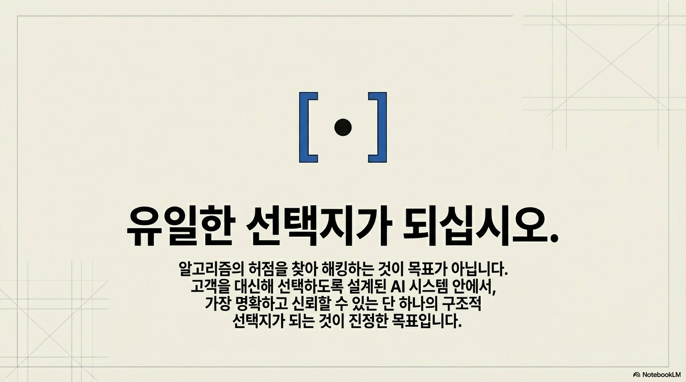알고리즘을 속이거나 이기려 애쓰는 대신, AI 에이전트가 고객에게 주저 없이 추천할 수 있는 '투명하고 구조화된 데이터 파트너'가 되십시오.
