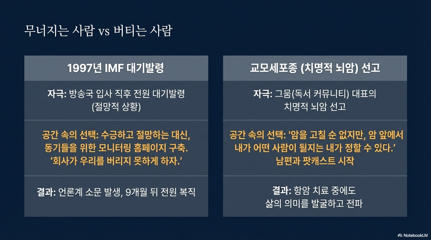 "암을 고칠 순 없지만, 암 앞에서 내가 어떤 사람이 될지는 내가 정할 수 있다."