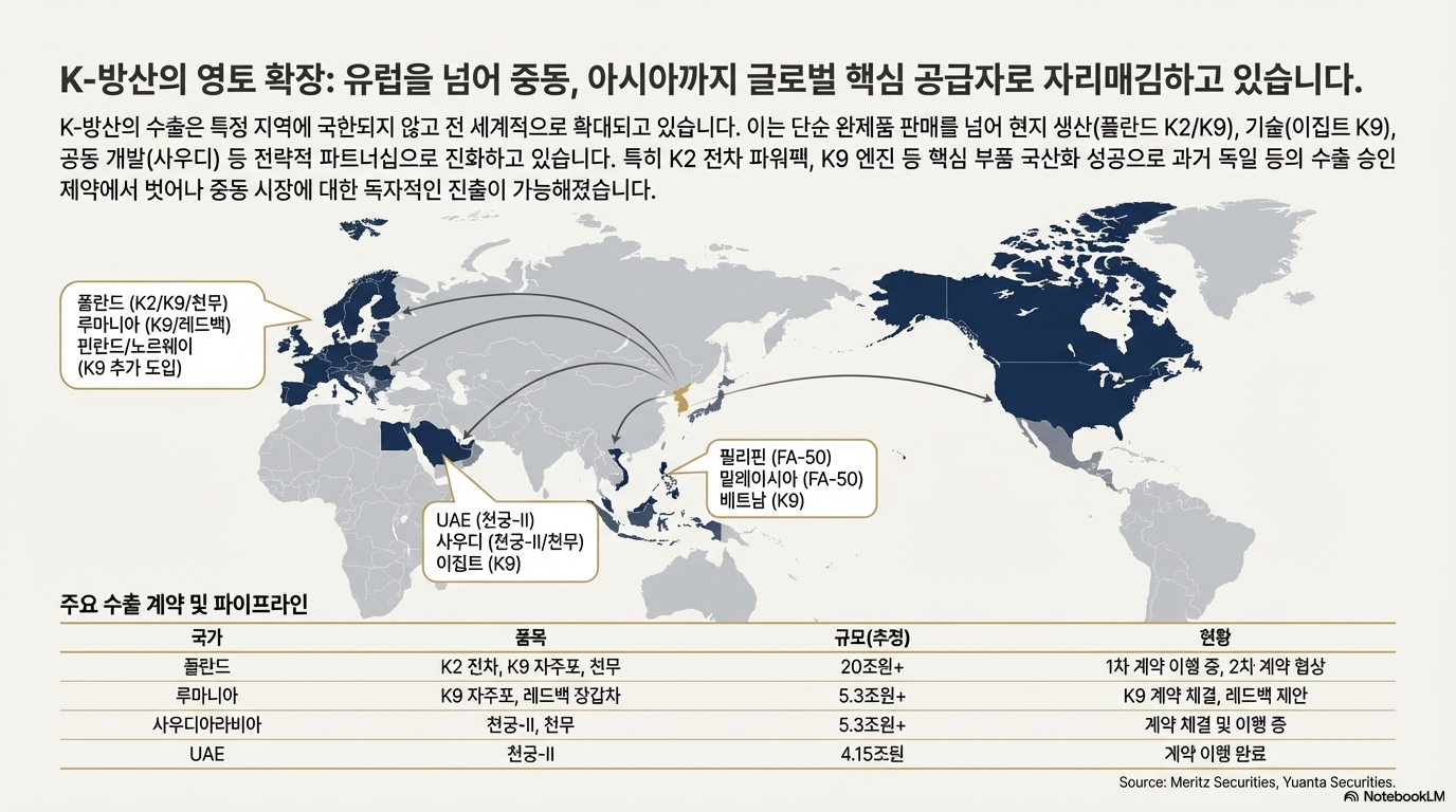 이러한 생산 공백은 K-방산에게 절호의 기회로 작용하고 있다. 한국은 단순히 성능 좋은 무기를 판매하는 데 그치지 않는다. 고객이 원하는 시점에 맞춰 신속하게 납품하는 '속도'와 기술 이전 및 현지 생산을 포함한 '파트너십'을 패키지로 제공한다. 폴란드와의 K2 전차 계약은 단순한 무기 판매를 넘어, 폴란드를 "유럽의 유지보수 허브"로 만들겠다는 거대한 비전을 포함하고 있다. 이는 유럽 내에서 K-방산의 영향력을 기하급수적으로 확대할 수 있는 전략적 발판이 될 것이다.