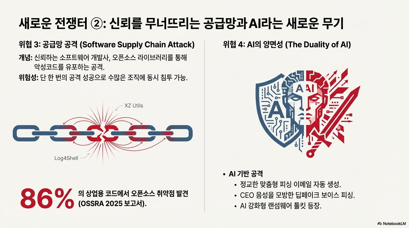 이는 우리에게 ‘공급망 공격’이라는 새로운 위협을 가르쳐주었습니다. 아무리 우리 집 현관문을 튼튼하게 만들어도, 우리가 신뢰하고 구매한 가구 안에 도둑이 숨어 들어온다면 소용이 없는 것과 같습니다. 개별 기업이 아무리 보안을 강화해도, 그들이 사용하는 외부 소프트웨어 공급망의 한 고리가 무너지면 전체 시스템이 순식간에 위험에 처할 수 있습니다.