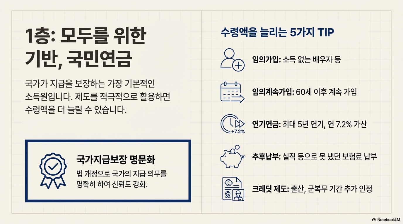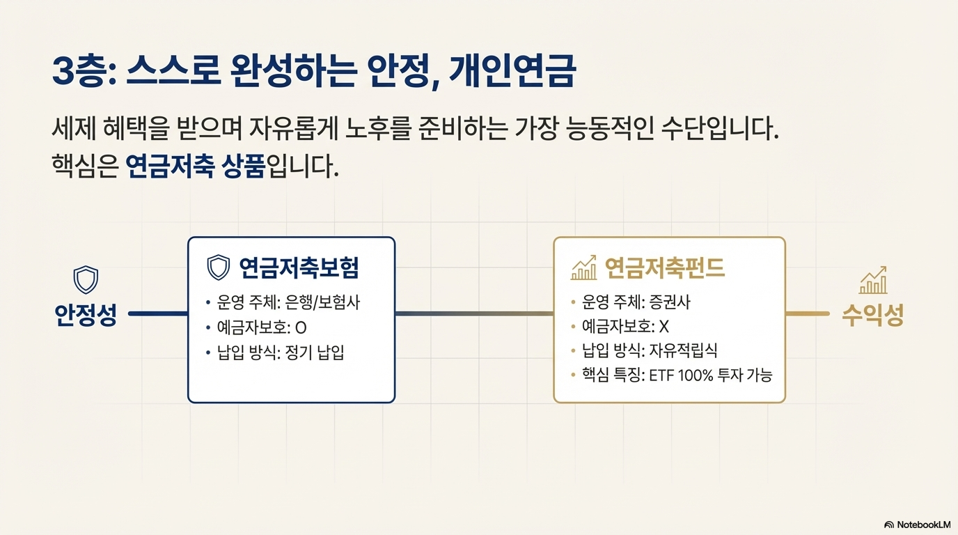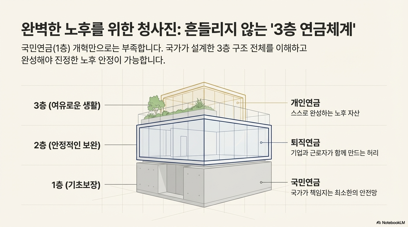 이것이 바로 국가가 1층 국민연금, 2층 퇴직연금, 3층 개인연금으로 구성된 '3층 연금' 설계를 적극적으로 권장하는 이유입니다.