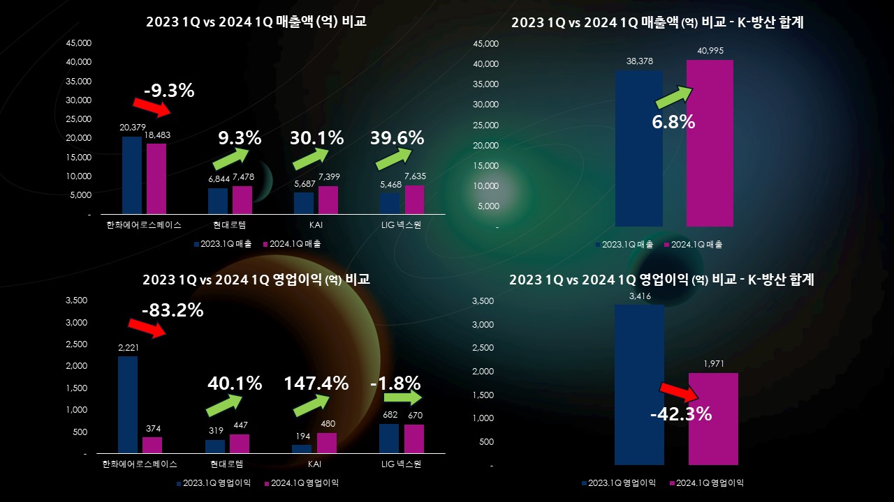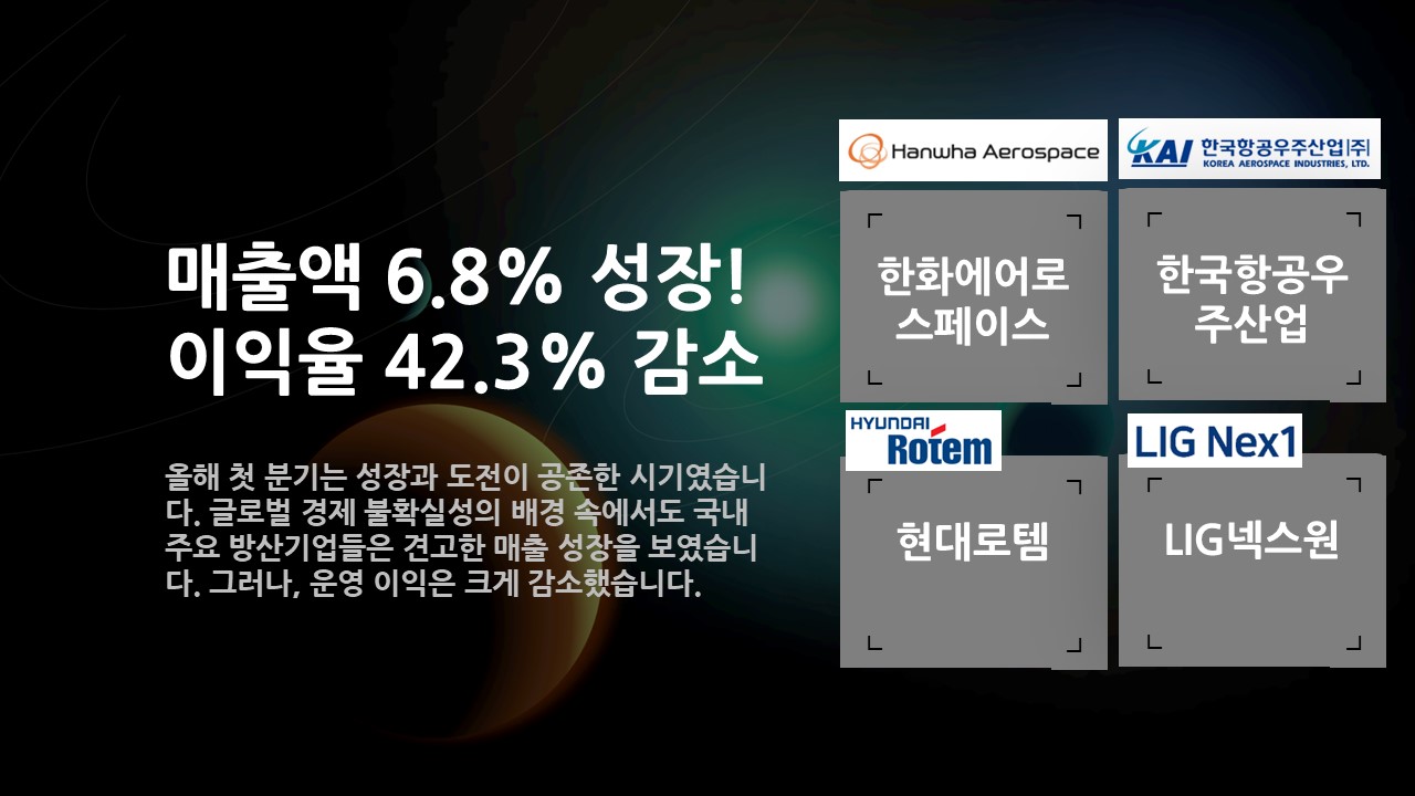 첫 분기, 대한민국 방산업계는 글로벌 경제의 불확실성이 지속되는 가운데서도 뚜렷한 성장세를 보였습니다. 이러한 성장은 국제 시장에서의 경쟁력을 강화하고 글로벌 방산 4대 강국으로의 도약을 목표로 하는 정부의 전략적 지원 하에 이루어졌습니다. '방산 빅4'로 불리는 한화에어로스페이스, 한국항공우주산업(KAI), 현대로템, LIG넥스원 등 주요 기업들이 전년 대비 매출은 증가했지만, 영업 이익은 감소하는 현상을 보였습니다. 이는 단순히 수치상의 변동을 넘어서, 방산업계가 현재 직면한 도전과 기회의 복잡한 맥락을 반영합니다.