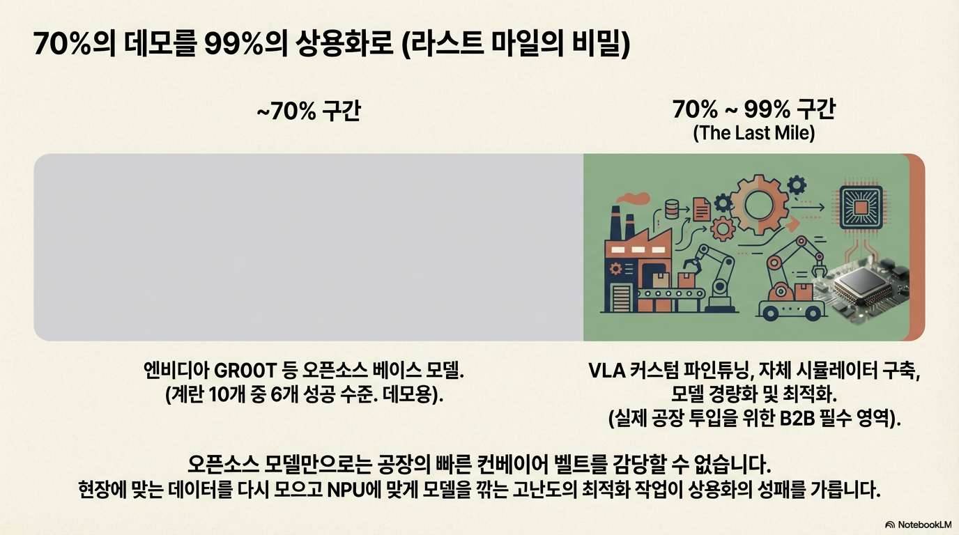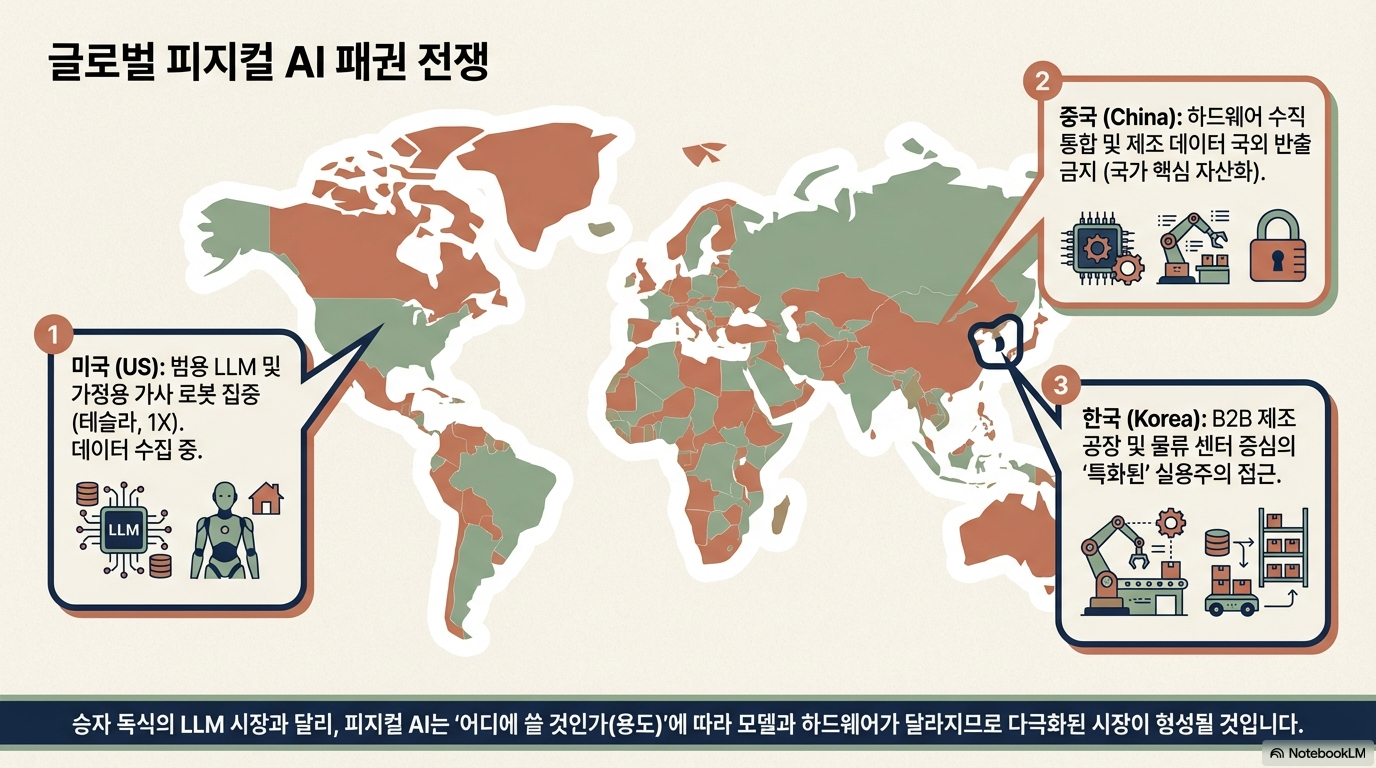 LLM 시장은 수십만 장의 GPU를 동원하는 글로벌 빅테크들의 자본력 싸움이었습니다. 하지만 피지컬 AI 시장은 양상이 다릅니다. 특정 모델 하나가 모든 산업을 장악하는 '승자 독식'이 어렵기 때문입니다.