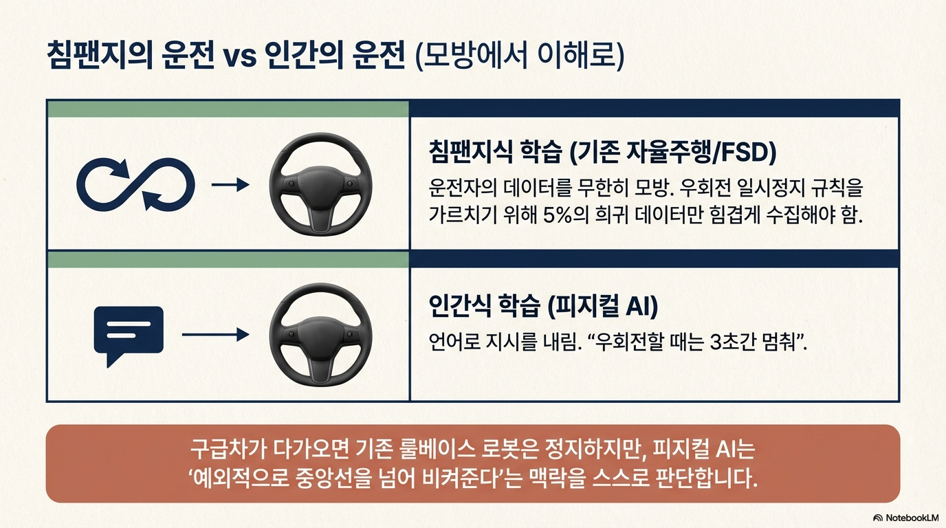 예를 들어, 기존 자율주행차는 '중앙선을 넘지 말라'는 규칙을 절대적으로 따릅니다. 하지만 피지컬 AI는 뒤에서 사이렌을 울리며 달려오는 앰뷸런스를 인지하면, 상황의 맥락을 파악해 중앙선을 넘어서라도 길을 터줘야 한다는 '판단'을 내립니다. 이는 AI가 세상을 단순한 좌표가 아닌, 언어적 상식으로 이해하기 때문에 가능한 일입니다.