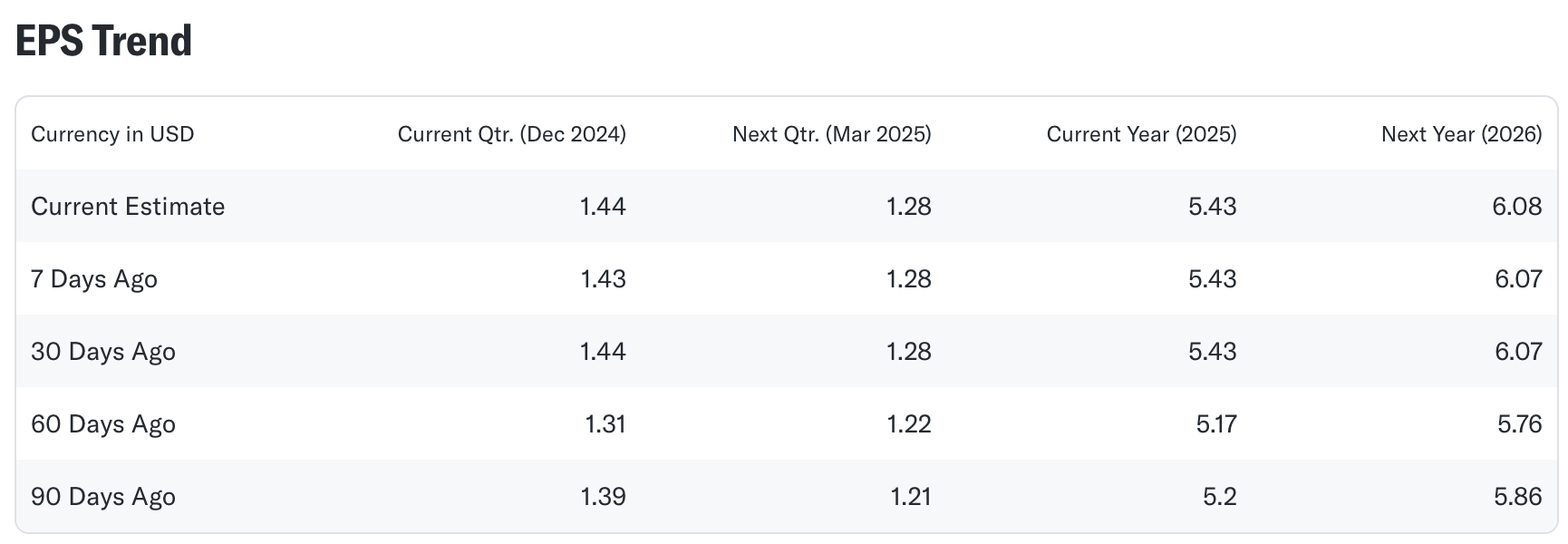 - 연간 예상 수익: 2024 회계연도는 주당 $5.41(+8.9%), 2025 회계연도는 주당 $6.12(+13.2%)로 추정.