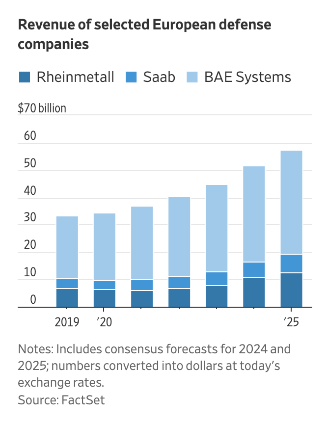 유럽의 방위비 확대와 우크라이나 전쟁으로 인한 방산 수요 증가 덕분에, 라인메탈은 사상 최대 매출을 기록했다.
