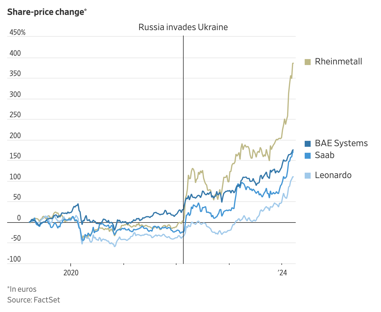 라인메탈은 우크라이나 전쟁으로 인해 유럽 방산업체 중 가장 큰 수혜를 입은 기업으로 평가받고 있다. 2024년 우크라이나 시장에서만 약 20억 유로(약 2조 9천억 원) 규모의 매출을 기록할 전망이다.