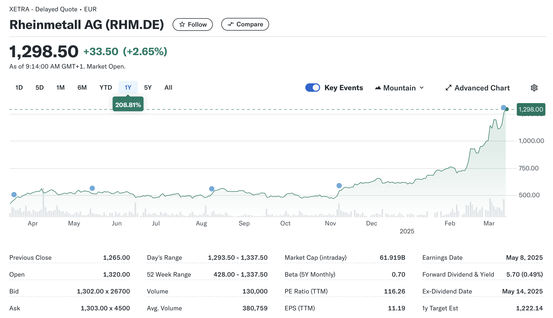 이러한 성과로 인해 라인메탈의 주가는 9.2% 상승한 1,261유로를 기록하며, 연초 대비 2배 이상 급등했다.
