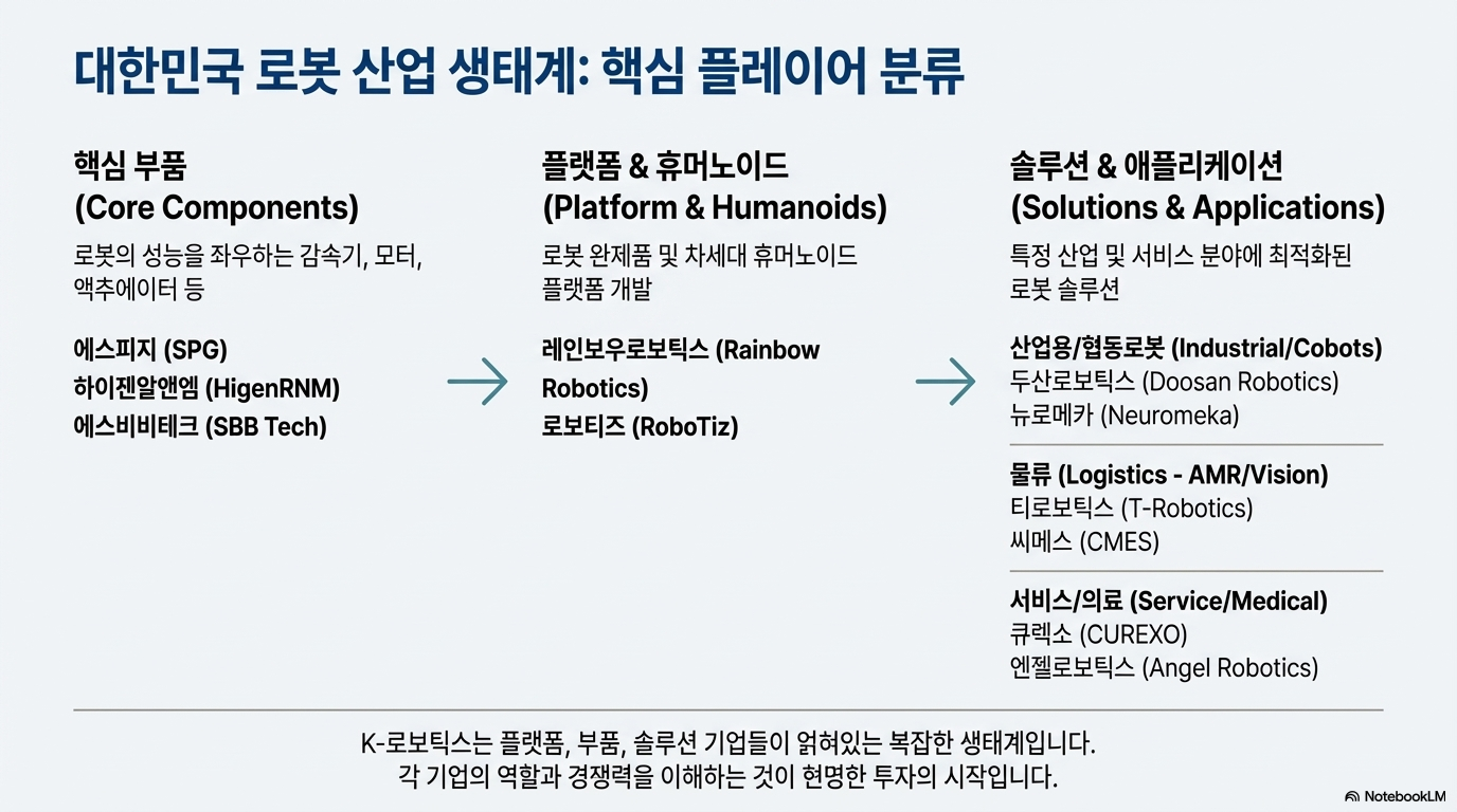 데이터는 냉정합니다. 글로벌 시장의 선두 주자들이 견고한 매출 성장을 기록하는 동안, 국내 시장은 아직 그에 미치지 못하고 있습니다. 이러한 격차는 국내 로봇 산업이 아직은 실질적인 성과를 내는 '성장주'라기보다는 미래 가능성에 대한 기대로 움직이는 '테마주'의 성격이 강하기 때문입니다. 따라서 전문가들은 로봇 산업 투자에 있어 연말연초의 기술 기대감이 고조되는 시기나, 특정 완제품 기업보다는 생태계 전반에 필수적인 부품 및 소프트웨어 기업에 주목하는 전략이 유효하다고 분석합니다.