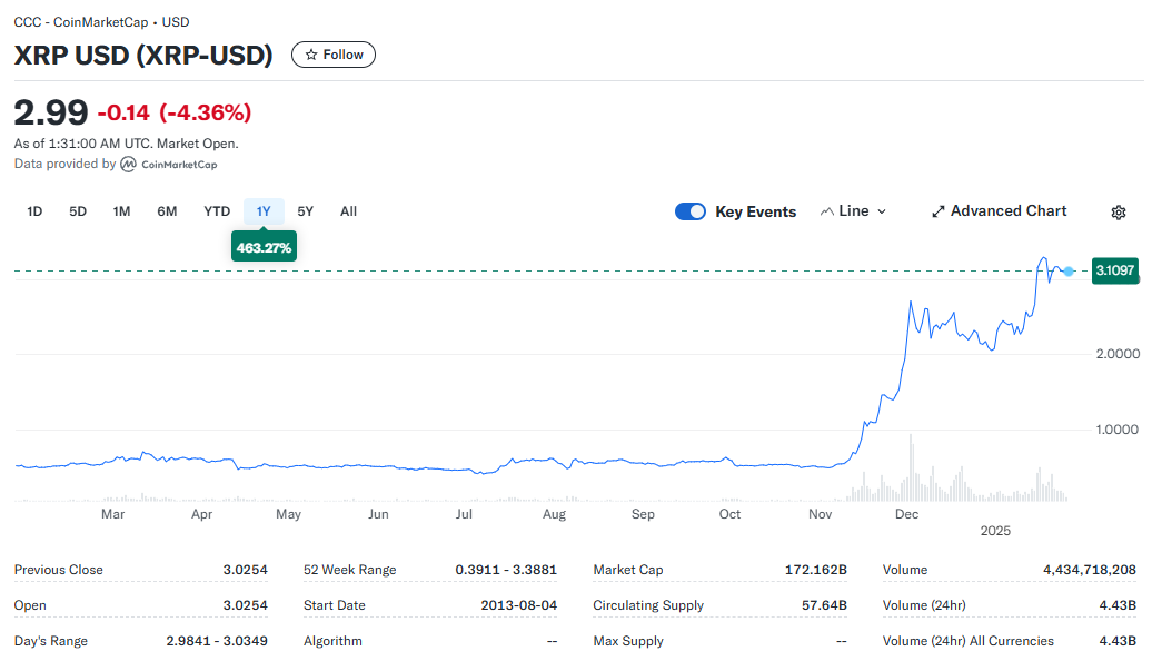 2025년 1월 24일 기준으로, XRP의 시가총액은 약 1,810억 달러로, 암호화폐 시장에서 세 번째로 높은 평가를 받고 있습니다. 이는 과거 몇 년간 지속적인 가격 부진과 변동성을 겪던 XRP가 2024년부터 본격적으로 반등하며 이룩한 놀라운 성과입니다. XRP의 시가총액은 이제 Nvidia, Microsoft와 같은 대형 기술 기업들과 비교할 만한 수준에 도달했으며, AMD의 1,990억 달러와 격차를 점점 좁혀가고 있습니다.