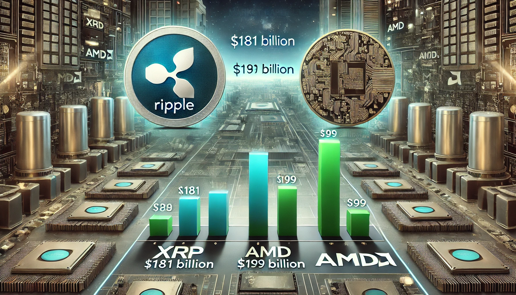 그렇다면 XRP가 AMD(Advanced Micro Devices) 같은 인공지능(AI) 반도체 대기업을 시가총액에서 추월할 수 있을까요? 두 기업과 시장의 가능성을 비교해 보겠습니다.