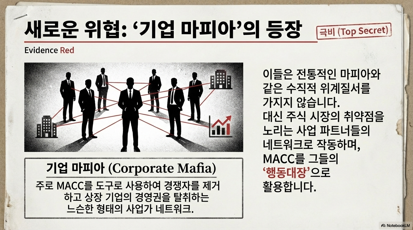 • 단계 1 (수사 발표): MACC가 특정 기업에 대한 수사를 전격 발표하며 시장에 공포를 조성합니다.