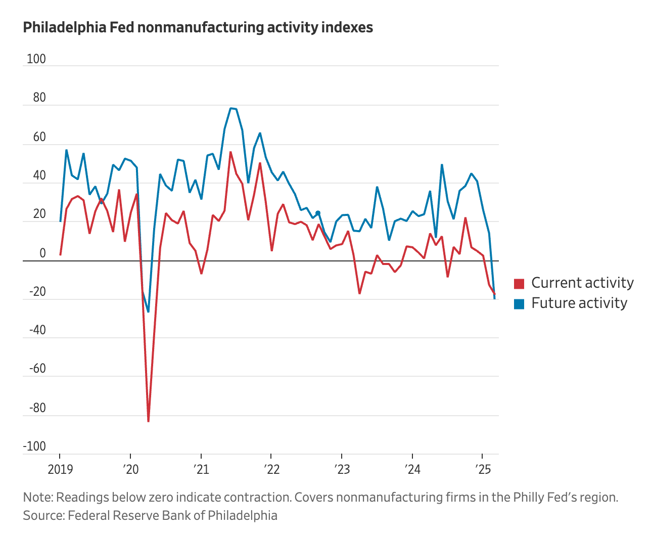 달라스 연준의 에너지 업계 설문에서 한 응답자는 “관세 정책은 목표도 불분명하고 예측도 불가능하다. 우리는 안정성을 원한다”고 말했습니다. 지역 연준 지부(뉴욕, 필라델피아, 리치먼드)의 최근 기업 조사에서도 제조업과 서비스업 모두 비관적인 전망이 확대되고 있음이 확인됐습니다.