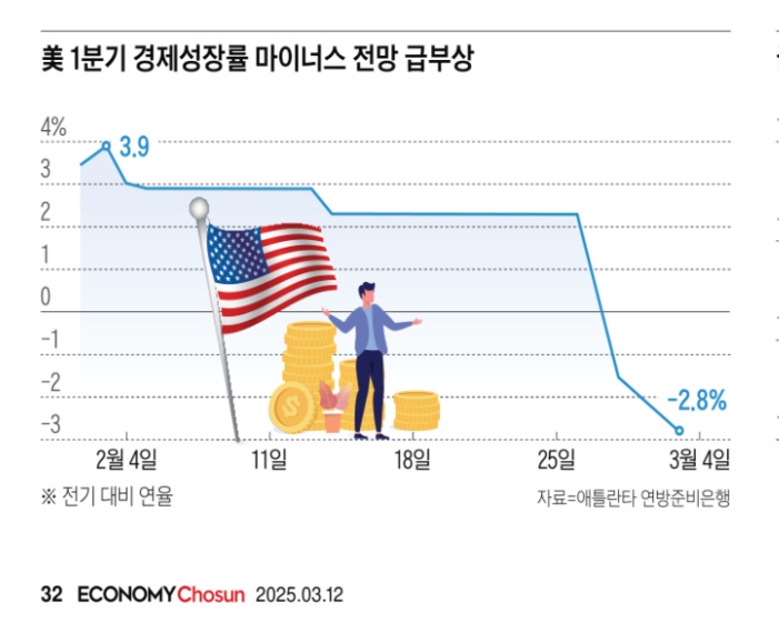 미국 경제는 2024년까지 비교적 안정적인 성장세를 유지했지만, 2025년 들어 급격한 둔화를 겪고 있습니다. 특히, 경제 성장률이 마이너스로 돌아설 것으로 예상되면서 경기 침체에 대한 우려가 커지고 있습니다.
