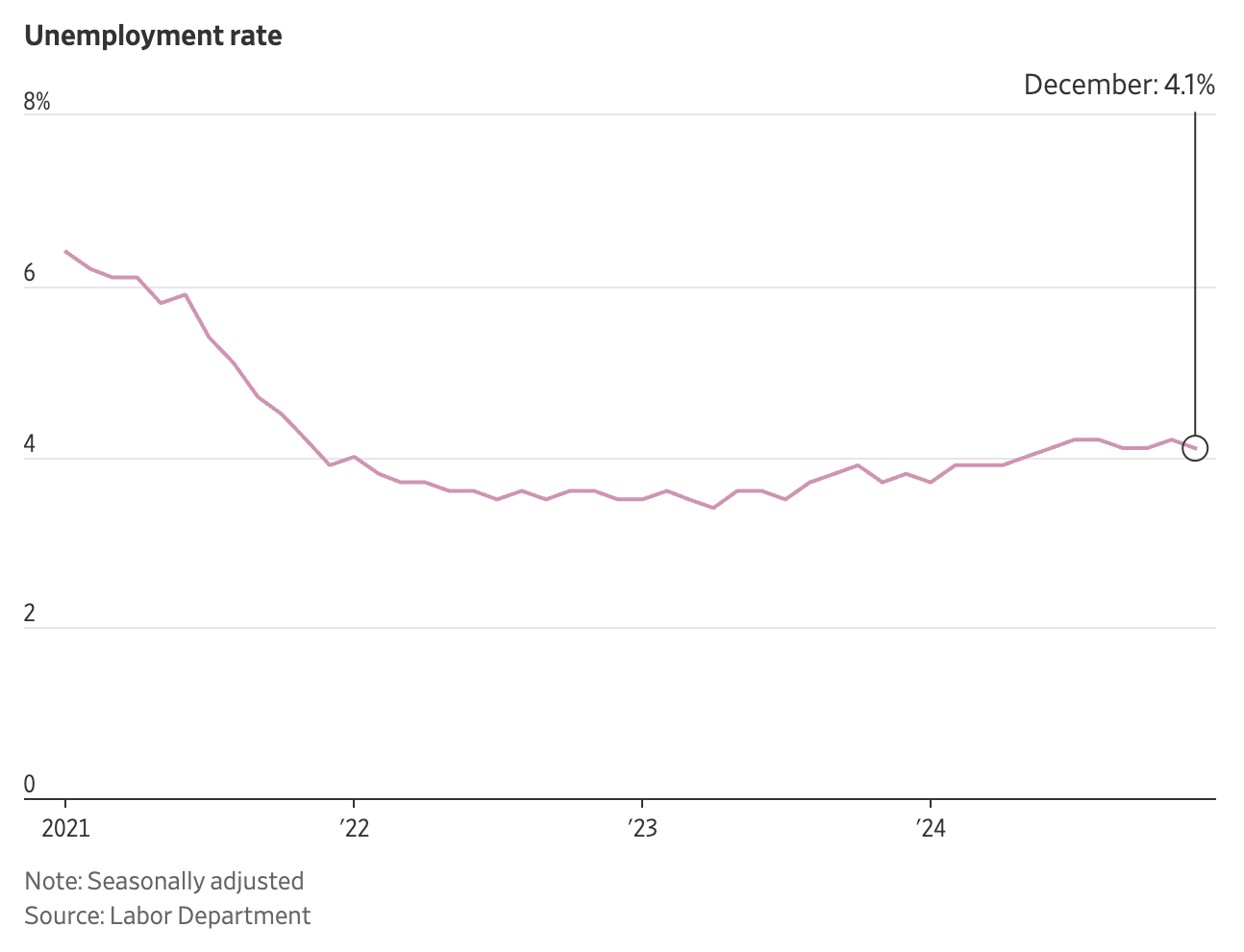 미국 노동부는 지난 12월 비농업 부문 신규 고용이 256,000명 증가했다고 발표했습니다. 이는 지난 3월 이후 가장 큰 월간 증가폭이며, 월스트리트저널(WSJ)이 경제학자들을 대상으로 한 설문에서 제시된 예측치인 155,000명을 크게 웃도는 수치입니다. 실업률도 4.2% 예상을 하회하는 4.1%로 하락했습니다.