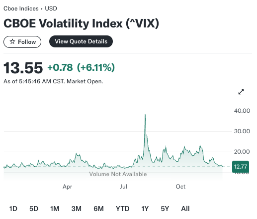 특히, 연준이 금리 인하를 단행할 가능성이 커짐에 따라 시장의 전반적인 분위기가 낙관적으로 유지되고 있습니다. 낮은 시장 변동성을 나타내는 CBOE 변동성 지수(VIX)는 지난주 평균 13 수준으로, 이는 8월 시장 조정 이전 수준까지 낮아진 상태입니다.