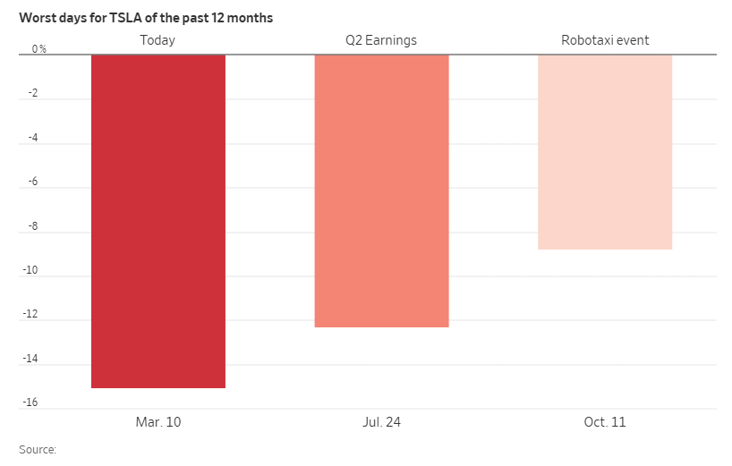 ① 테슬라의 15% 폭락 – 전기차 시장 둔화 우려