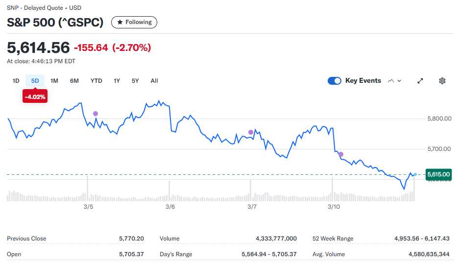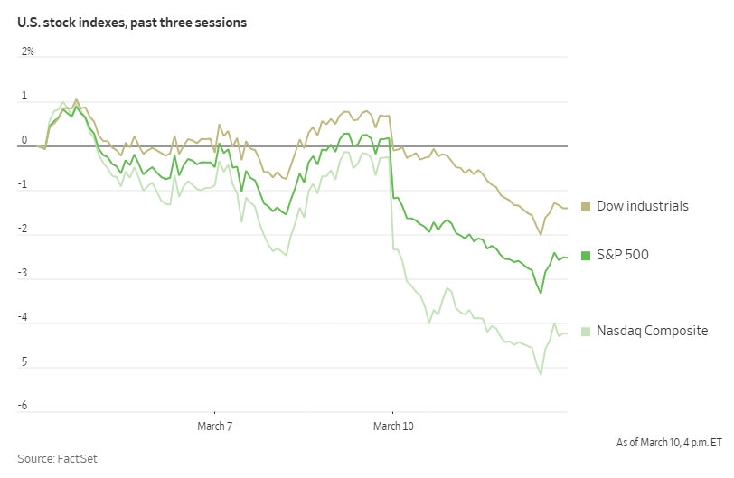 미국 증시가 3월 10일(현지 시각) 큰 폭으로 하락했습니다. 다우지수는 900포인트 가까이 하락, S&P 500은 2.7% 하락, 그리고 나스닥은 무려 4% 폭락하며 투자 심리가 크게 위축되었습니다. 특히, 테슬라는 15%나 급락하며 기술주 전반에 걸쳐 매도세가 강하게 나타났습니다.