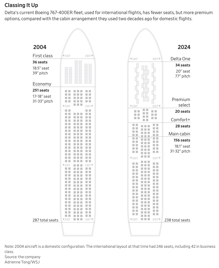 - 예를 들어, 델타는 퍼스트 클래스 좌석의 약 **75%**를 유료로 판매하고 있으며, 이는 과거와 비교할 때 상당한 변화입니다.