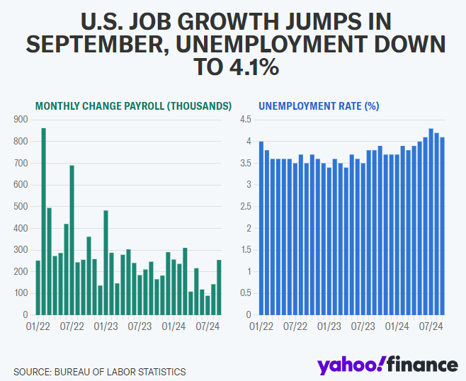 한편, 9월 실업률은 4.1%로 하락하여 노동 시장의 안정성을 보여주고 있습니다. 8월에 4.2%였던 실업률이 다시 낮아진 것은 경제가 전반적으로 회복되고 있다는 긍정적인 신호로 해석됩니다. 이는 더 많은 사람들이 일자리를 찾고 있으며, 고용주들이 경제적 불확실성에도 불구하고 인력을 지속적으로 확충하고 있음을 나타냅니다.