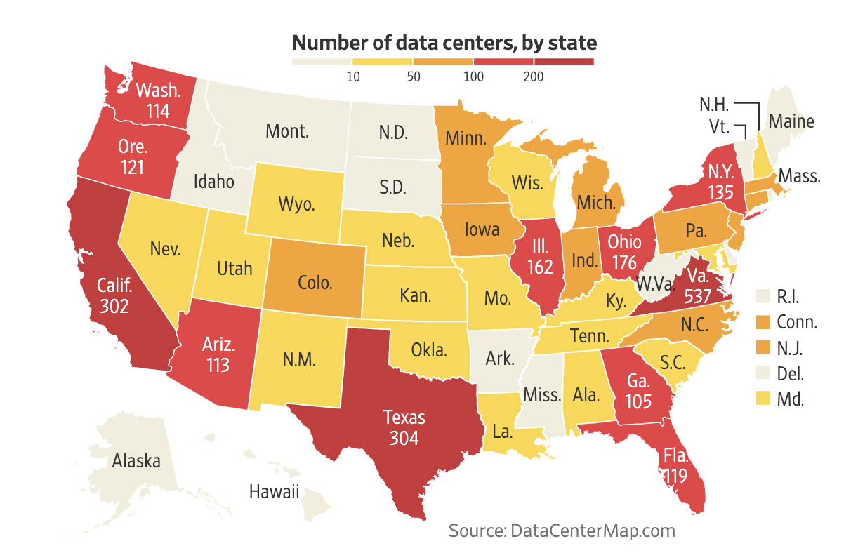 - 반면, 텍사스, 오클라호마 같은 지역은 대규모 태양광 및 풍력 발전이 가능하며, 전력 비용이 상대적으로 저렴해 AI 데이터 센터를 운영하기에 적합하다.