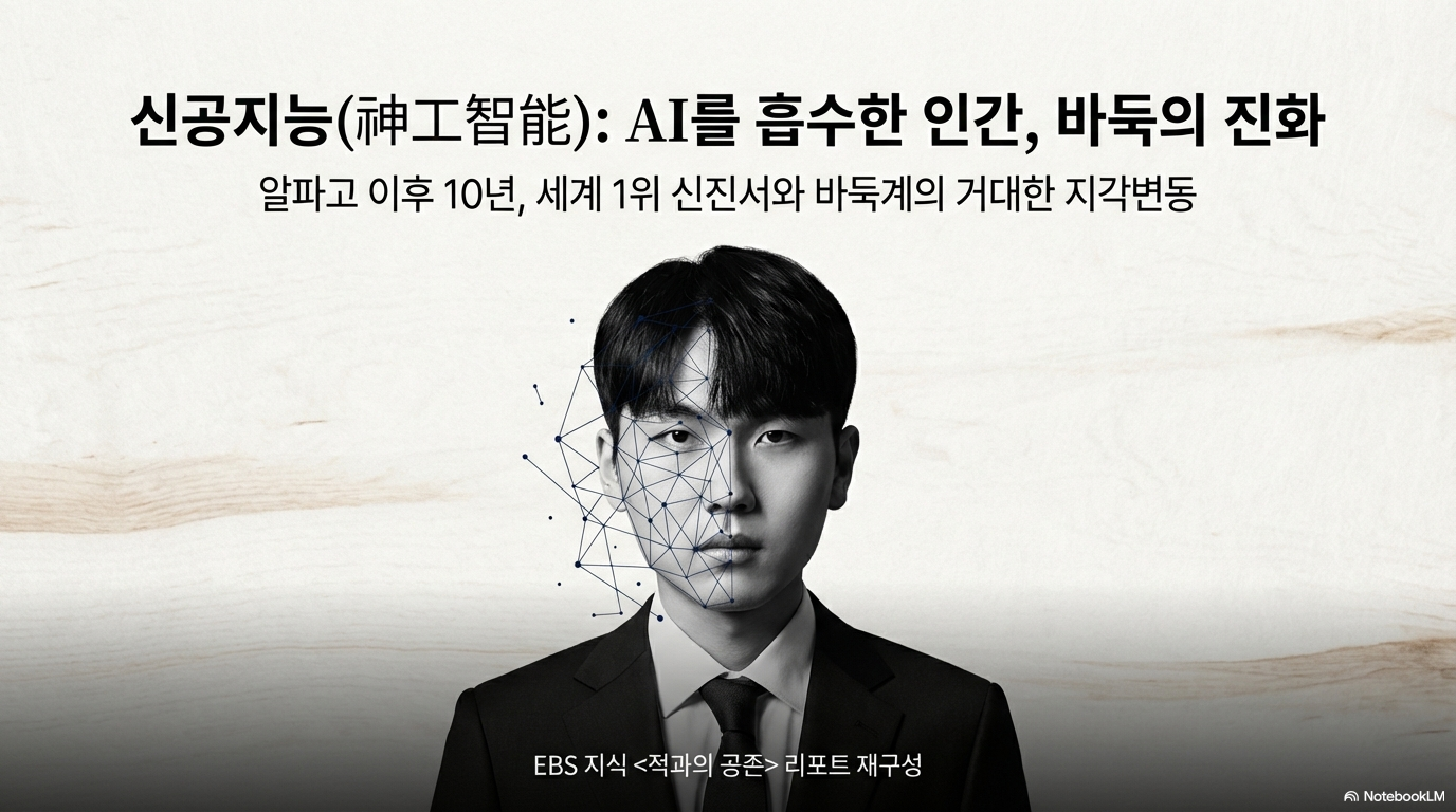 10년 전, 인공지능 '알파고'가 던진 돌은 단순한 승부를 넘어 인류의 지적 자부심에 거대한 균열을 냈다. 2,500년이라는 긴 시간 동안 인간이 쌓아 올린 바둑의 성채는 불과 10년 만에 인공지능이라는 연산 장치에 의해 완전히 재편되었다. 이를 두고 바둑계에서는 '천지개벽'이라는 표현을 서슴지 않는다. 이제 바둑판은 고뇌하는 인간의 '대화의 장'이 아닌, 최적의 정답을 찾아내는 '연산의 전장'으로 변모했다. 오늘날 세계 정점에 선 신진서 9단은 그 변화의 한복판에서 기계의 논리를 인간의 언어로 번역해내는 상징적 존재가 되었다.