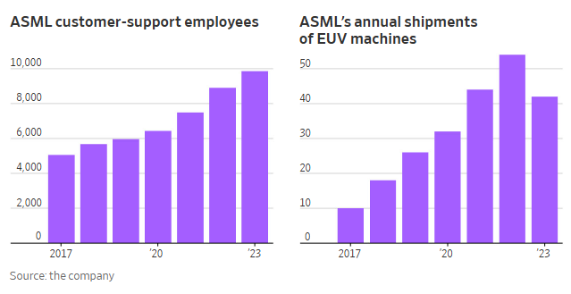 오늘날 ASML은 전 세계적으로 약 100,000개 이상의 부품으로 구성된 이 복잡한 기계를 제작하며, 이를 유지 관리하기 위해 10,000명의 고객 지원 엔지니어를 고용하고 있습니다.