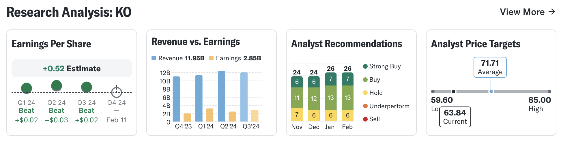 - 주요 금융기관들은 코카콜라의 장기적인 성장 가능성을 긍정적으로 평가하며, 대부분 ‘매수’ 의견을 유지하고 있습니다.