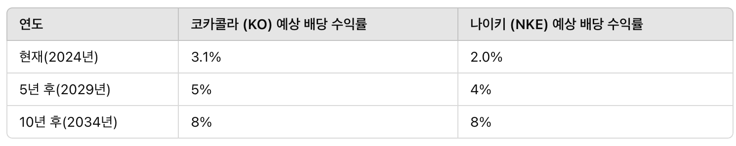 🔹 코카콜라 & 나이키 장기 투자자의 미래 배당 수익률 예측