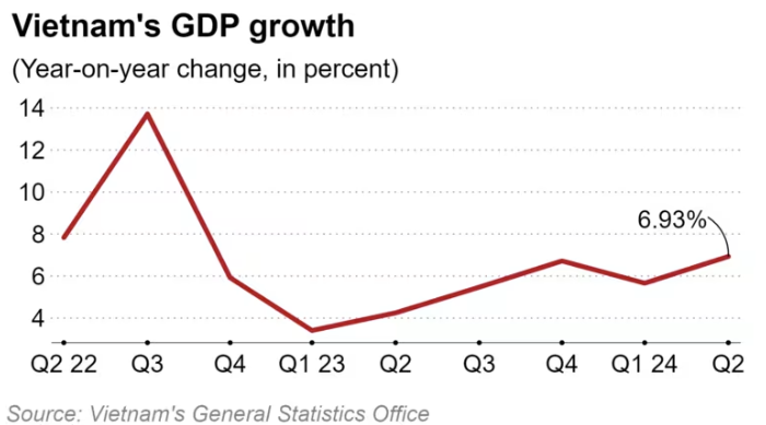 베트남의 경제가 2024년 목표를 향해 힘차게 전진하고 있습니다. 올해 2분기 베트남의 국내총생산(GDP)은 전년 동기 대비 6.93% 증가하며 1분기의 5.66%를 상회하는 성과를 거두었습니다. 이는 코로나 팬데믹 이후의 회복을 위한 강력한 노력의 결과로 볼 수 있습니다.