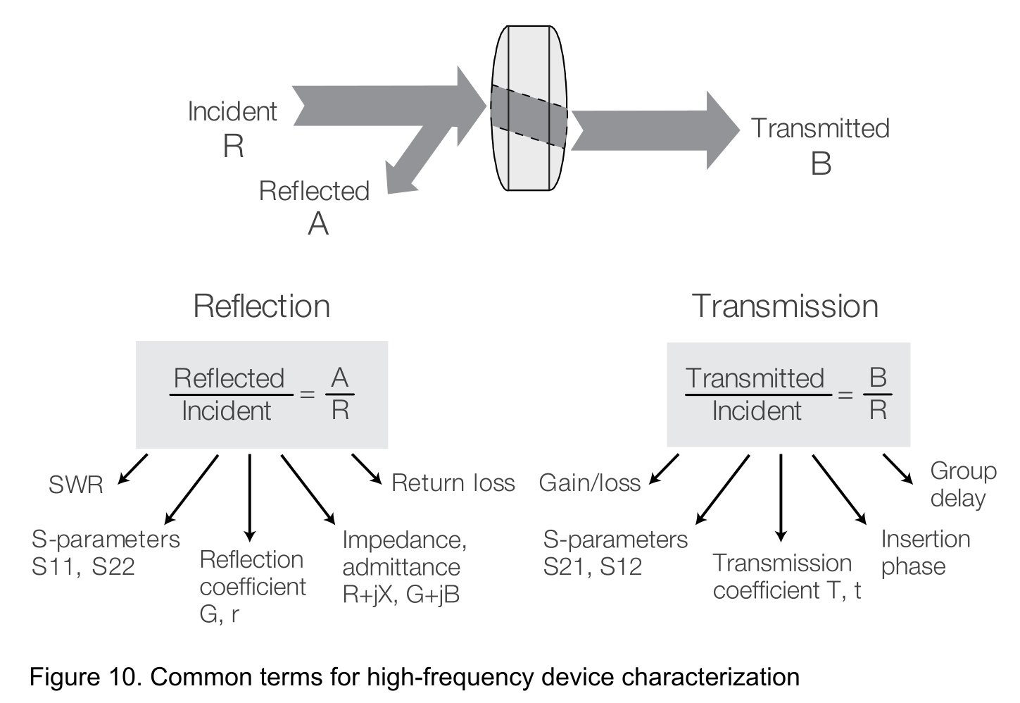이제 우리는 전자기파의 기본을 이해했으므로 이를 측정하는 데 사용되는 공통 용어를 배워야 합니다. 벡터 네트워크 분석기 용어는 일반적으로 다음의 측정을 나타냅니다.
