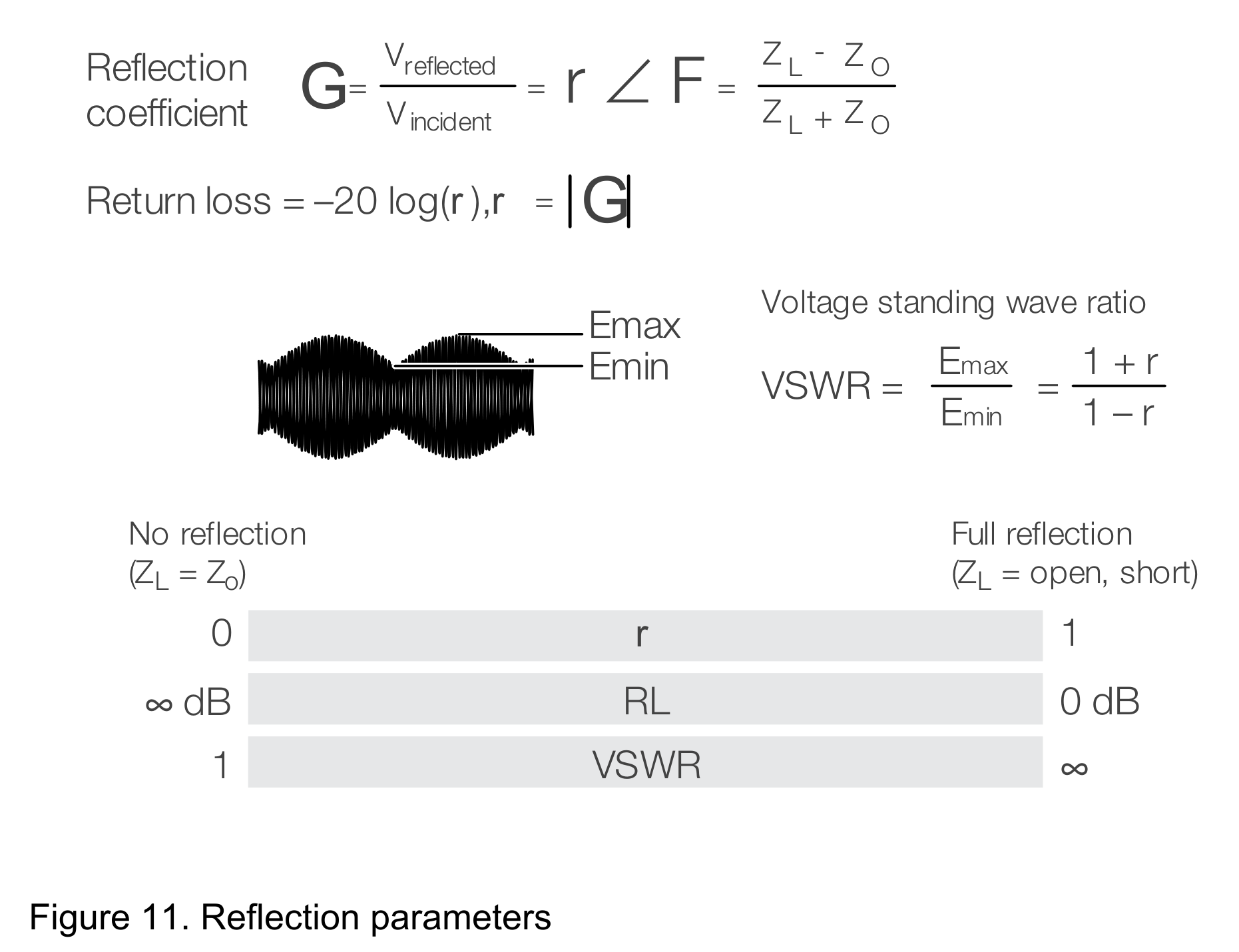 비율 반사의 가장 일반적인 용어는 복수 반사 계수인 ρ 또는 감마입니다(그림 11).