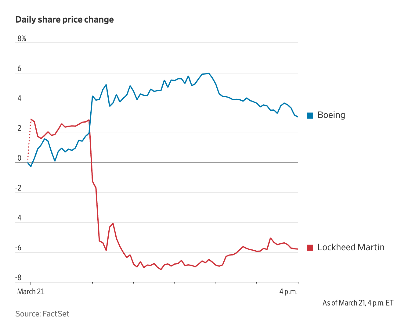 록히드는 이미 F-35 전투기의 지연과 설계 문제, 소프트웨어 오류 등으로 곤혹을 치르고 있었으며, 매출 구조 다변화를 위해 새로운 계약 확보에 힘써 왔습니다. 그러나 이번 F-47 프로젝트에서도 보잉에 밀리면서, 앞으로의 사업 다각화 전략에 제동이 걸릴 수밖에 없습니다. 발표 당일 록히드 마틴 주가는 약 6% 하락하며 시장의 실망감을 그대로 보여주었습니다.