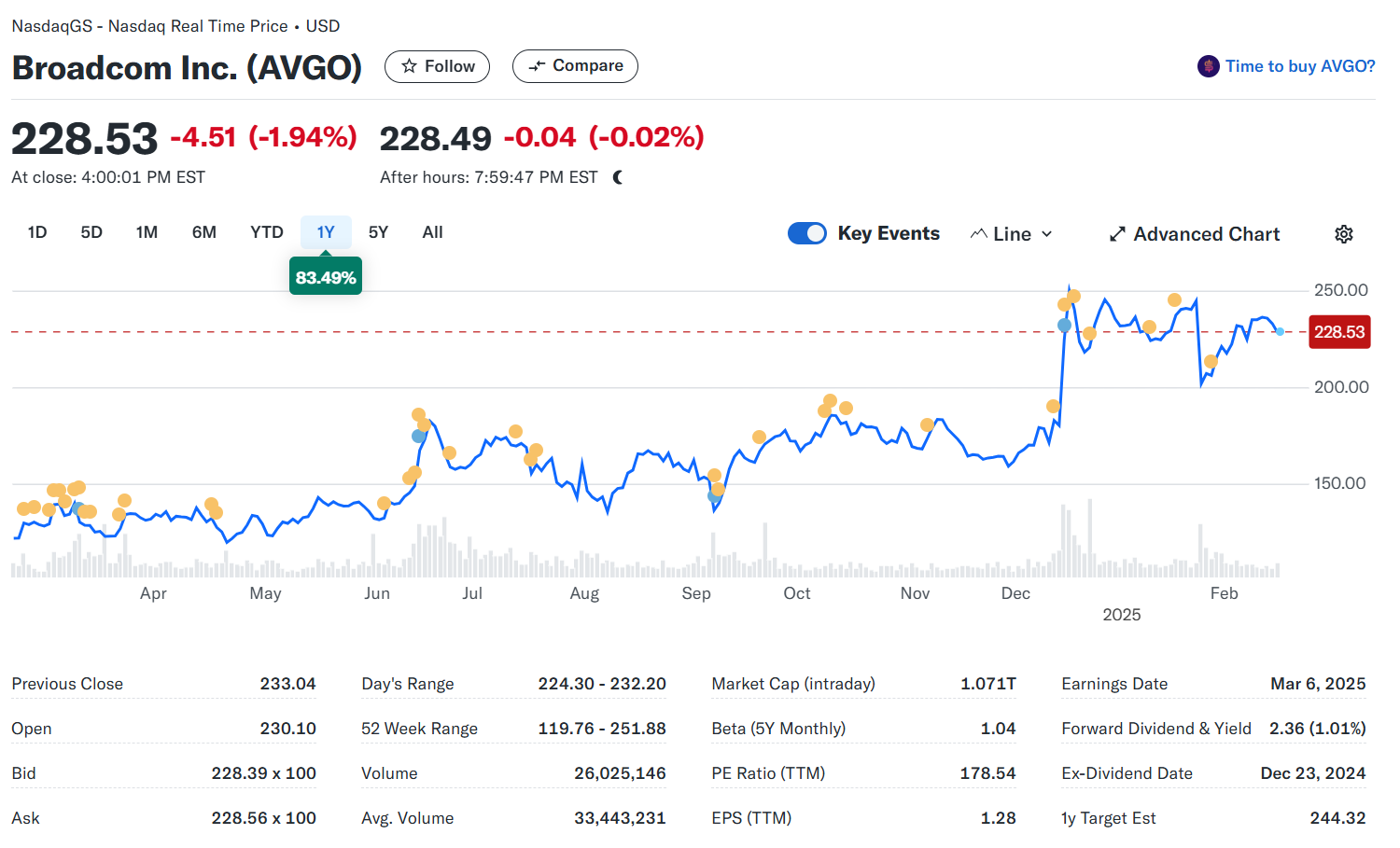 이 소식이 전해지자 인텔의 주가는 급등했고, 브로드컴의 주가는 소폭 하락했다. 인텔은 과거 반도체 업계를 주도하던 기업이었지만, 최근 몇 년간 시장 점유율을 잃고 재정적으로도 어려움을 겪고 있다. 반면 브로드컴은 AI 반도체 사업을 앞세워 1조 달러 클럽에 진입하며 승승장구하고 있다. 이번 인수 가능성이 시장에 미치는 영향을 살펴보자.